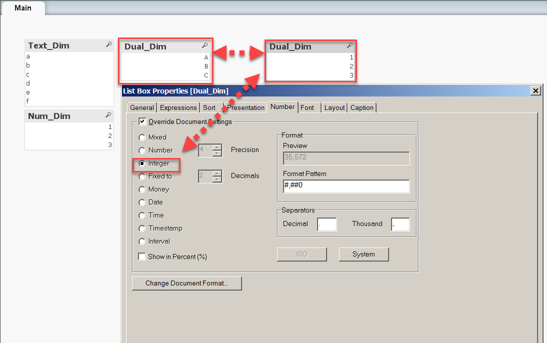 On screenshot below dual values on UI are shown as text by default, but you can change their UI format to numbers. This is clearly indicated when you preview field tags in data model.