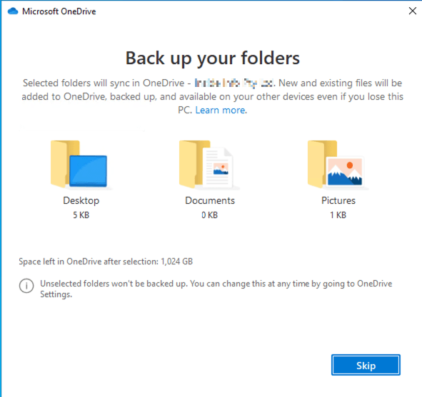 • I also recommend disabling backup of any personal folders as the purpose of that OneDrive is purely use as a sync tool with SharePoint